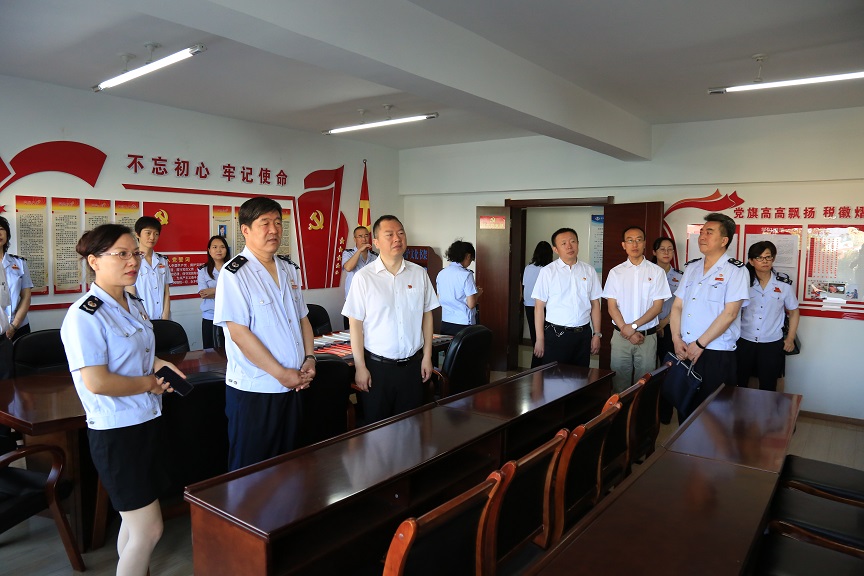 八月1日早上九點,蘭州市稅務(wù)局機關(guān)第八黨支部和公司機關(guān)黨支部一行20余人來到西固區(qū)稅務(wù)局參觀黨建長廊和第六支部的黨建陣地。參觀過程中,詳細介紹了西固稅務(wù)自機構(gòu)改革以來在黨建工作方面取得的成就、亮點和品牌文化,實地觀摩了支部黨建陣地建設(shè),查閱了學(xué)習(xí)基礎(chǔ)臺賬及相關(guān)資料,了解了黨建融合企業(yè)、黨員特色隊伍建設(shè)等新思路、新做法。參觀結(jié)束后,大家一致認(rèn)為,西固稅務(wù)黨建文化陣地特色濃,黨建服務(wù)品牌標(biāo)識亮,讓參觀人員內(nèi)心既受到震撼,思路又進一步得到拓寬。