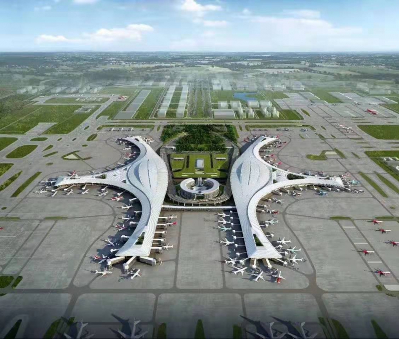 成都天府國(guó)際機(jī)場(chǎng)一期工程飛行區(qū)等級(jí)為4F,建設(shè)“兩縱一橫”共3條跑道、60萬(wàn)平方米的航站樓、246個(gè)停機(jī)位以及相應(yīng)的空管工程、供油工程、航空公司基地工程等設(shè)施。