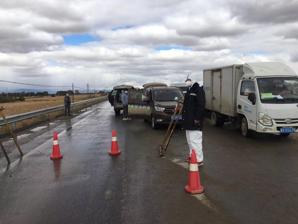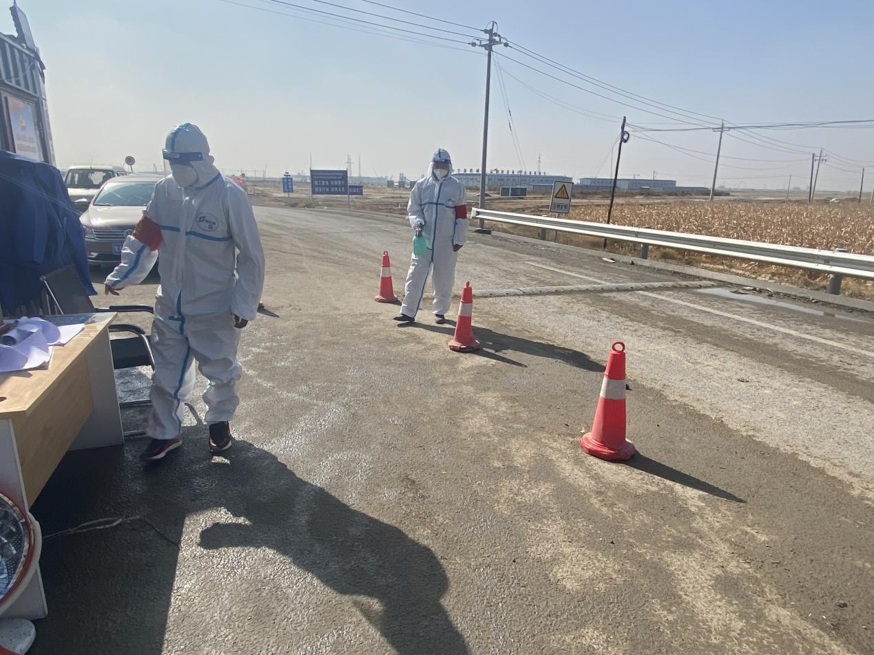項(xiàng)目部黨支部書記杜騫,第一時(shí)間安排人員對(duì)北門卡口進(jìn)行布置,安排采購(gòu)疫情物資(醫(yī)用口罩、防護(hù)服、測(cè)溫槍、消毒液等),與10月1日10點(diǎn)左右在新機(jī)場(chǎng)北門疫情防控卡點(diǎn)布設(shè)完畢,配備了12名項(xiàng)目部管理人員(8小時(shí)三班倒)在卡口進(jìn)行疫情防控。新機(jī)場(chǎng)北門疫情防控卡點(diǎn)人員對(duì)過往車輛、人員進(jìn)行登記,掃碼、查看行程卡、核酸報(bào)告、登記來源地、去往地點(diǎn)。對(duì)無48小時(shí)核酸報(bào)告的人員進(jìn)行勸返。