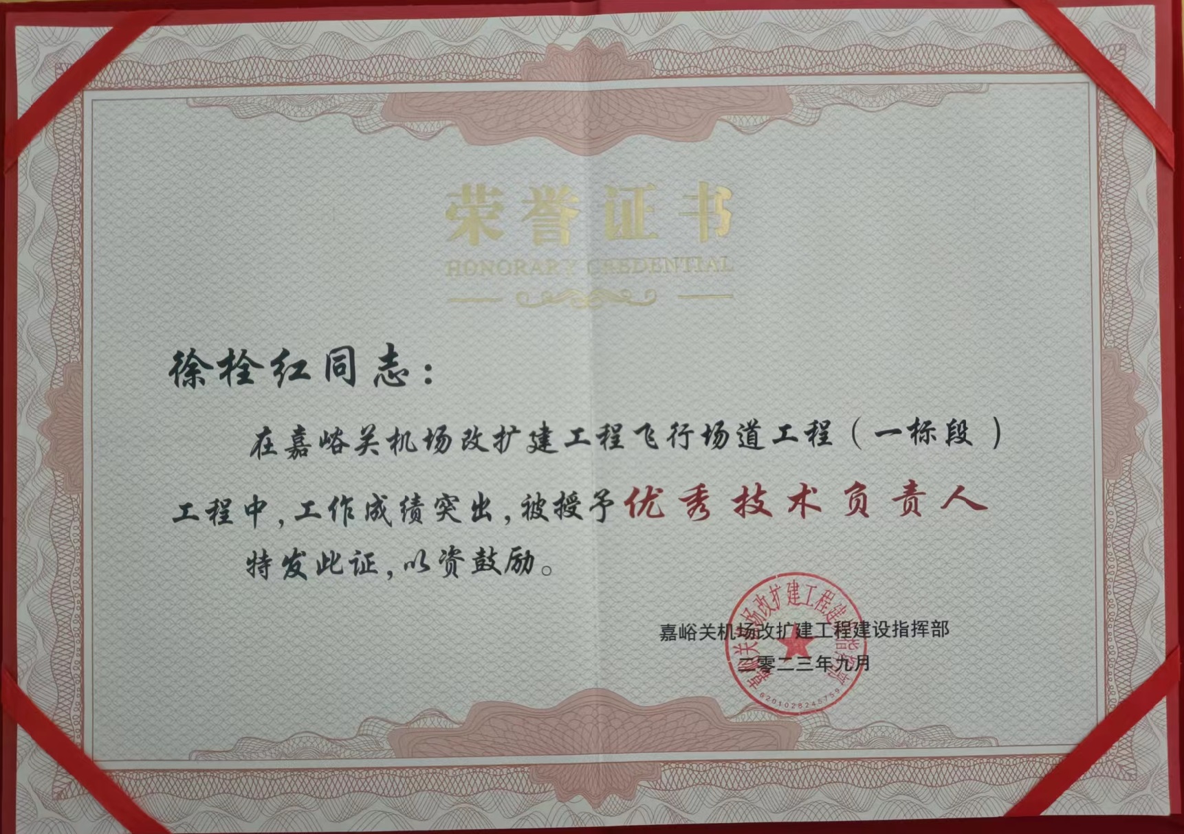 近日,嘉峪關(guān)機場改擴建工程建設(shè)指揮部對在嘉峪關(guān)酒泉機場改擴建工程中作出重要貢獻的參建單位給予通報表彰,公司榮獲“嘉峪關(guān)機場改擴建工程飛行場道工程 (一標段)優(yōu)秀組織管理單位”稱號,徐栓紅同志被授予“優(yōu)秀技術(shù)負責(zé)人榮譽稱號”。?