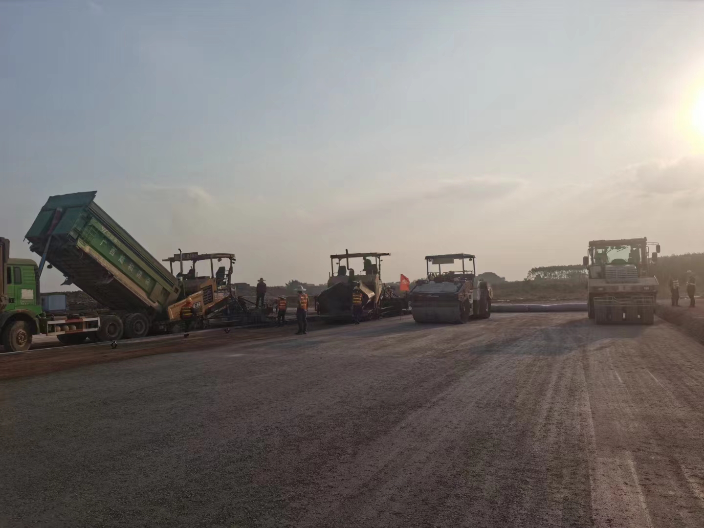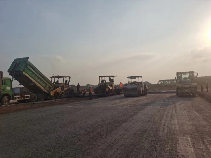 11月28日,隨著第一車水泥穩(wěn)定砂礫混合料倒入攤鋪機,攤鋪機緩緩啟動,標志著由我司承建的南寧吳圩機場改擴建工程飛行區(qū)場道工程(四標段)水穩(wěn)基層試驗段施工正式開始。