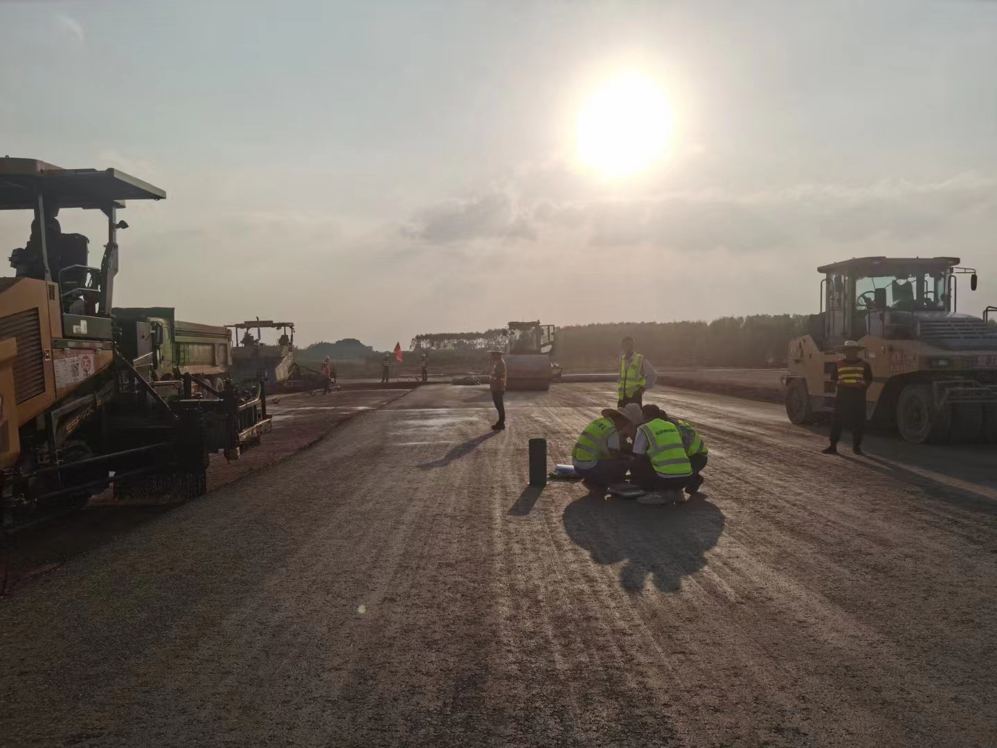 為確保試驗段攤鋪設(shè)備工作高質(zhì)、高效進行,項目部統(tǒng)一部署,各部門相互配合,認真進行施工前各項準備工作,提前對有關(guān)人員進行安全培訓和技術(shù)交底。施工現(xiàn)場井然有序,項目負責人嚴格把控運輸、攤鋪、碾壓、檢測等各施工環(huán)節(jié),保證施工質(zhì)量與安全,同時對試驗段標高、壓實度、平整度和厚度等各項指標進行實時檢測并記錄,確保各項指標符合技術(shù)規(guī)范要求,并確定水穩(wěn)層松鋪系數(shù)、壓路機最佳碾壓遍數(shù)及速率,最終達到預期試驗效果。
