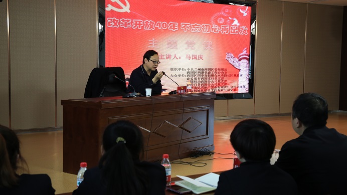 為紀念改革開放40周年,進一步激勵黨員不忘初心、牢記使命。 11月28日,公司黨委牽頭舉辦了 “改革開放四十年 不忘初心再出發(fā)”的主題黨課。120余名黨員在我司大會議室聆聽了講座。本次主題黨課在蘭州市西固區(qū)委組織部和西固區(qū)兩新黨建辦公室指導下開展,本樓宇內(nèi)5家單位以及兩新辦和社區(qū)共同參與。組織這種形式的大黨課,就是貫徹落實全區(qū)組織工作會議精神,加強“五化五強”黨支部建設,推進街道社區(qū)黨建、單位黨建、樓宇黨建互聯(lián)互動,努力提升城市基層黨建工作水平。
